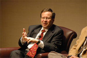 The discussion opened with a question about energy demand and whether the country or the world would run out of traditional energy sources. Dr. Koonin commented that even though 80% of the world’s energy needs are met with conventional sources and demand is growing as countries around the world develop, a global shortage of coal, oil or gas is not the main problem. The main challenge is meeting that demand in affordably while reducing greenhouse gas emissions and other environmental impacts of energy use. Reducing U.S. dependence upon imported oil is the main challenge in the transportation sector.Dr. Koonin identified several things we should do in the U.S. to meet our energy challenges in transport, heat, and power. In transportation, the U.S. should aggressively promote fuel efficiency and conservation, develop alternative vehicle technologies (including gradual electrification), and pursue alternative fuels such as advanced biofuels. Meeting our energy challenge for heat and power will require developing and deploying a smart grid with storage, setting a price on carbon emissions (which will favor increased use of natural gas, wind, and nuclear fission), and pursuing low-carbon power portfolio standards. The U.S. should also promote conservation and efficiency in stationary uses through appliance and building standards.