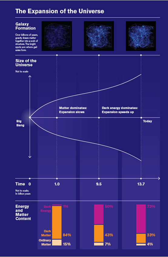 Since the 1920s, scientists have known that the galaxies—long thought fixed and unmoving—were actually receding deeper into the cosmos. In fact, we now know from observations of Type 1a supernovae that distant objects are speeding faster and faster away from us as the universe expands. That's because, not only is the universe expanding, it's expanding at an increasing rate. Scientists at Fermi National Accelerator Laboratory (Fermilab), Brookhaven National laboratory (BNL), SLAC National Accelerator Laboratory, and Lawrence Berkeley National Laboratory (Berkeley Lab) are eager to find out why. Recent observations by SLAC scientists and the Sloan Digital Sky Survey may provide an answer.