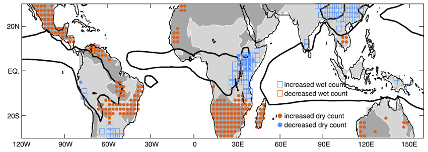 Impacts of anthropogenic warming on tropical land region rainfall.