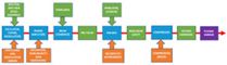 Lawrence Berkeley National Laboratory, the University of Michigan, and Lawrence Livermore National Laboratory are developing coherent combination of fiber lasers to realize highly efficient ultrashort pulse lasers with an unprecedented combination of high repetition rate and energy. With key enabling concepts of a fiber system (blue boxes) recently demonstrated, development is focusing on techniques (green) to make possible the required multi-Joule energies with very low levels of undesired precursor pulses (sources -orange), as is needed for compact laser-plasma particle accelerators and other societally important applications.