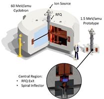 Massachusetts Institute of Technology will build the first prototype in the High-Current H2+ Cyclotron (HCHC) family of particle accelerators, testing direct axial injection of a high-current molecular hydrogen ion beam into a compact cyclotron through an RFQ and the subsequent formation of a stable vortex during acceleration to 1.5 MeV/amu. This vortex motion is crucial to clean extraction, paving the way to 5 mA continuous wave H2+ beams from compact cyclotrons with applications in particle physics, isotope production, and material testing.