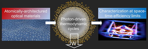 To achieve light-driven energy and information conversion systems that operate at thermodynamic limits by understanding and controlling the flow of photons, electrons, ions, and phonons in atomically-architectured materials.