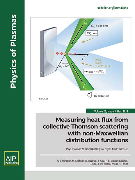 R.J. Henchen, M. Sherlock, W. Rozmus, J. Katz, D. Cao, J.P. Palastro, and D.H. Froula, “Observation of nonlocal heat flux using Thomson scattering.” Physical Review Letters 121, 125001 (2018). [DOI: 10.1103/PhysRevLett.121.125001]