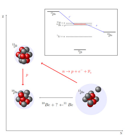 The observation of a resonance in the beryllium-11 nucleus suggests that the proton emission from beryllium-11 is a two-step process rather than a dark matter decay channel.