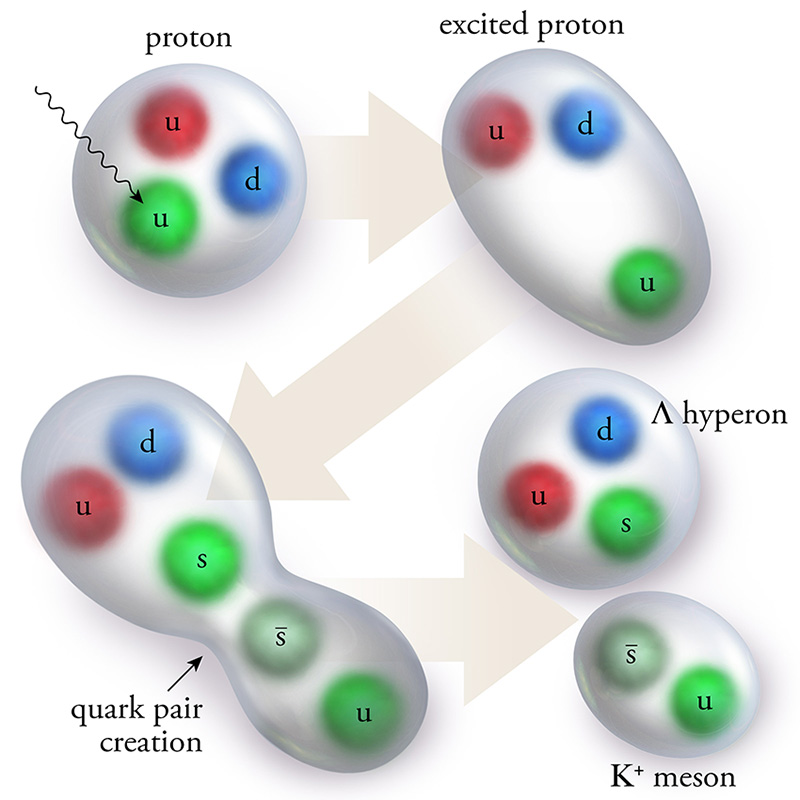 The proton's primary building blocks, up and down quarks, are produced more often than strange quarks in scattering experiments.