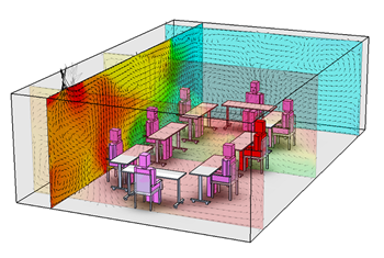 Combined highly instrumented and configurable facilities and computational capabilities to provide robust and quantitative information about how behavioral, environmental, and operational conditions affect the risk of airborne transmission in indoor spaces, such as classrooms, offices and conference rooms. This information can be used to mitigate the spread of viruses in enclosed spaces.