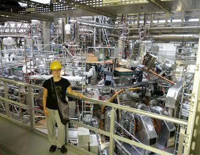 Alex at the Max Planck Institute for Plasma Physics in Greifswald, Germany, standing in front of the Wendelstein 7-X stellarator (summer 2018).
