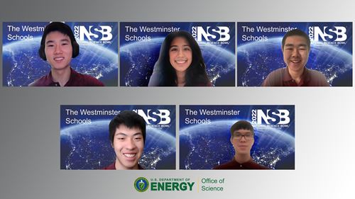 Mason Yu is a junior interested in earth science and is Westminster's Science Bowl captain. This is Mason’s second time attending nationals, as he competed in the 2020 National Science Bowl. Last summer, Mason attended US Earth Science Olympiad Study Camp, where he earned the award for best overall earth science project for work on reimagining the Arctic freight shipping industry. Outside of science, Mason plays flute and piano, enjoys listening to K-pop, and plays an unhealthy amount of video games. This summer, Mason will be conducting geology research using geographic information systems mapping at Elon University.